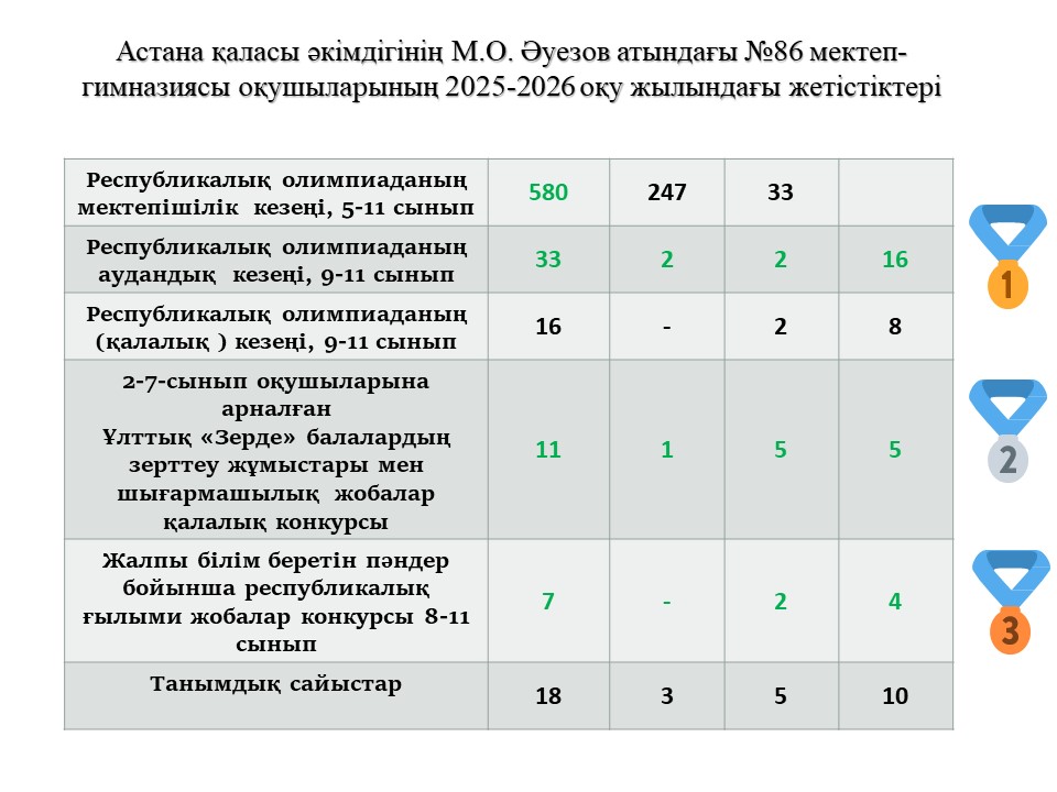 Астана қаласы әкімдігінің М.Әуезов атындағы №86 мектеп-гимназия ШЖҚ МКК бос лауазымдарға жарияланған конкурстың шешімі